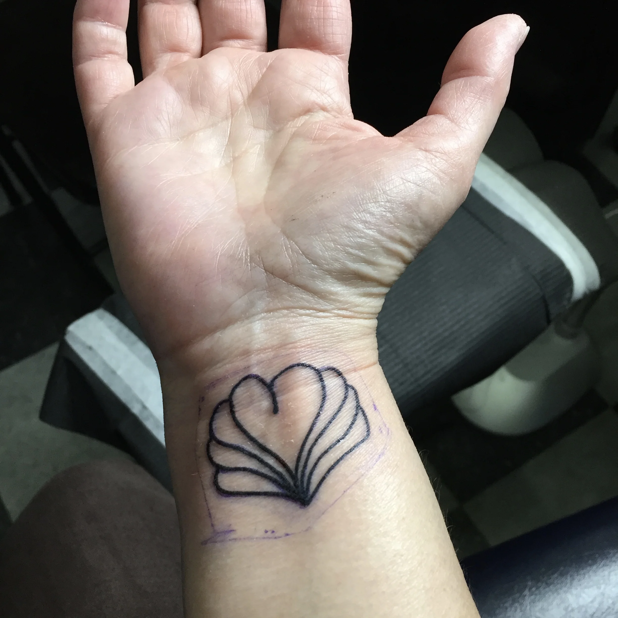 My mom doodles. Walk into her office and invariably you'll find a notepad or an envelope with a handwritten phone number surrounded by a page full of doodles. I have been eying her office space to try to steal away some of those doodles. I've had the idea for some time that I'd get a tattoo of one of her drawings to remember her by so that when she's gone I'll have a part of her with me. Then I realized I could have her create some doodles for me and have her pick out her favorite. And so today, for my birthday, I had one of her hearts tattooed on my wrist.