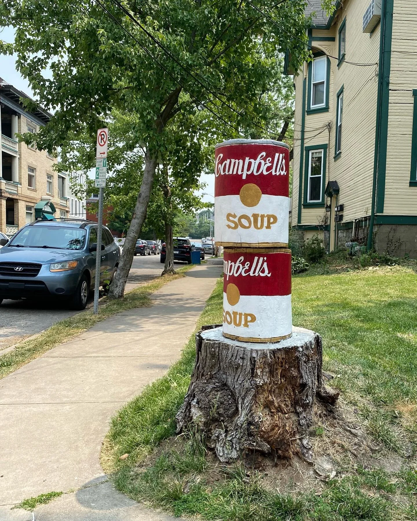 View fullsize Thank you, Pittsburghers, for the chance to happen upon your unsanctioned public art contributions!  #odetoandy #odetoandywarhol #campbellsoupcans #popart #stumpart #pittsburghartists #pghpublicart #pittsburghpublicart
