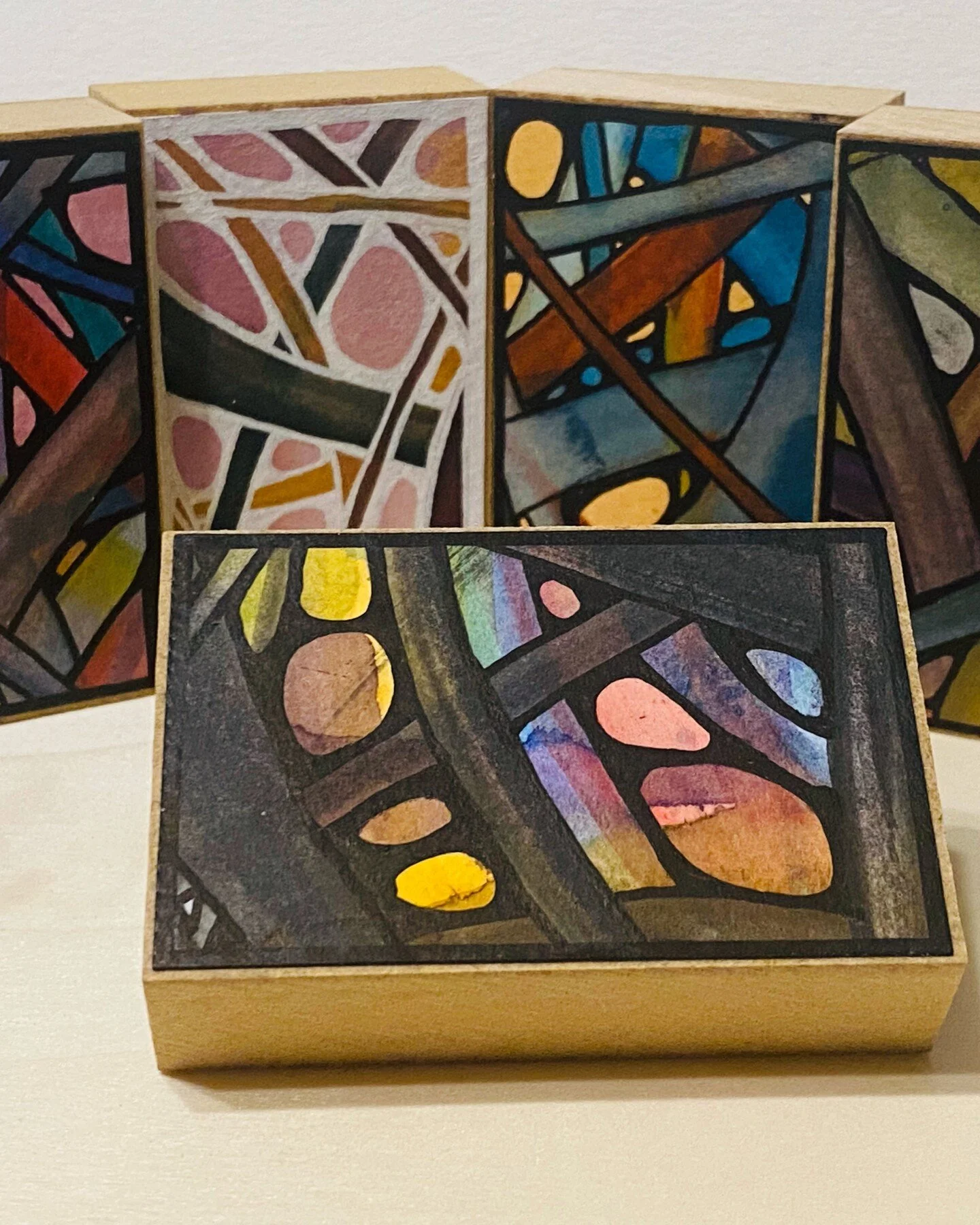 View fullsize My lastest iteration of art blocks for ArtOMat machines, "Meandering Abstractions", is on its way to Winston-Salem, NC! So much fun working on these little, affordable art pieces. If you live in a city with no machines near you dispensing A