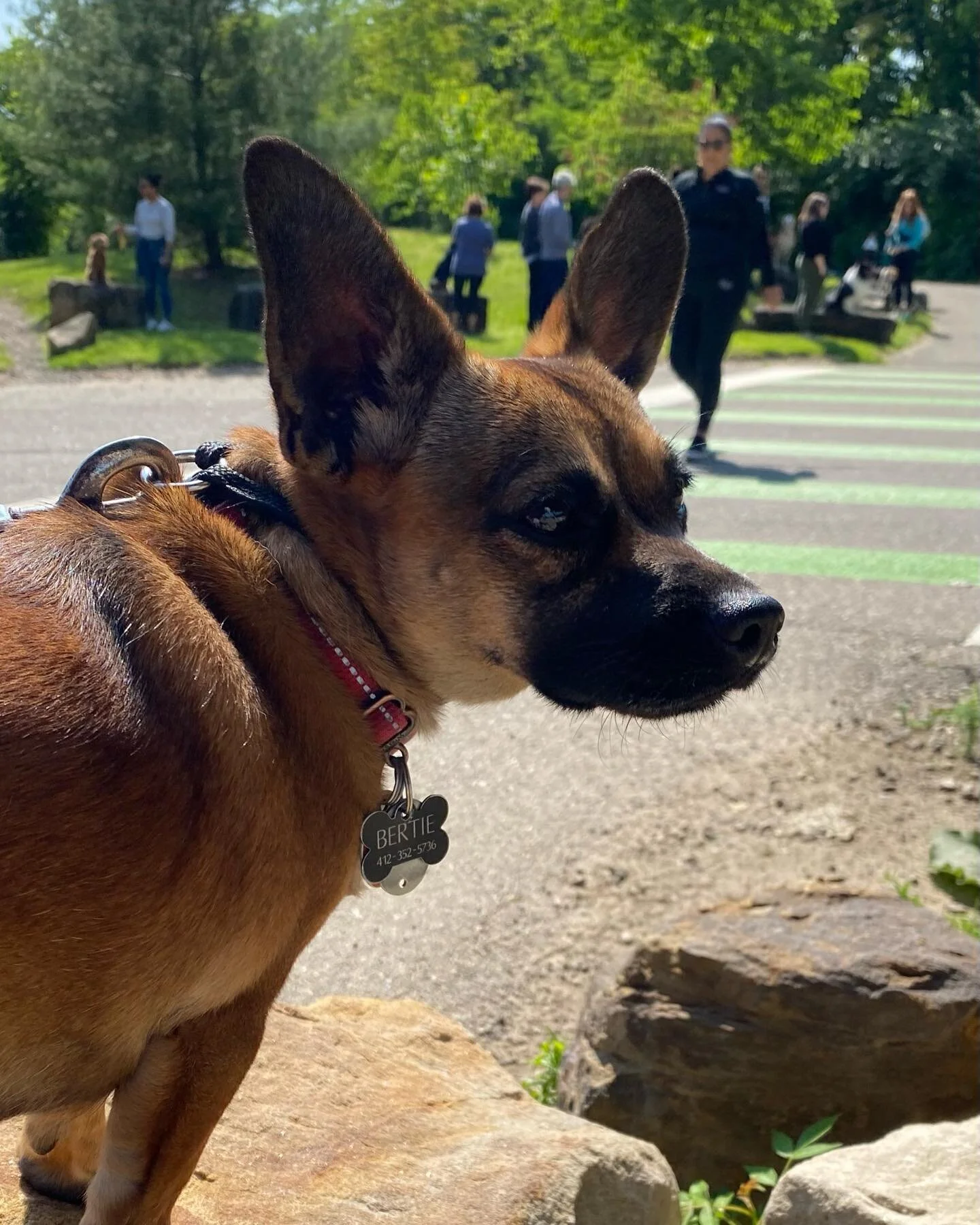 View fullsize First group class with Say It Once Dog Training. Bertie did great. A little barking toward the end and we desperately need to focus on sit, but otherwise she did great. A great test of the dogs with trains, bikers, runners, geese, and noise under the