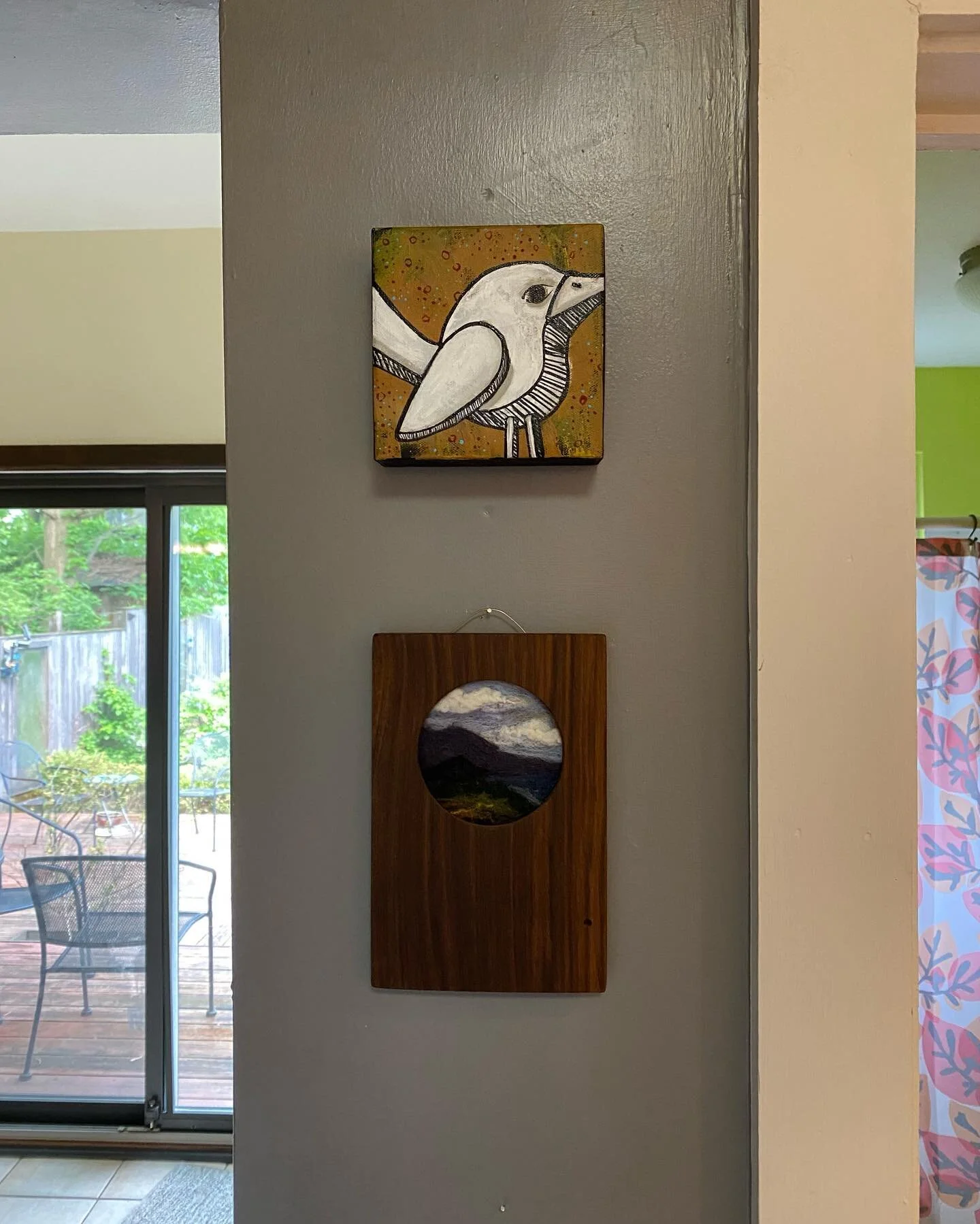 View fullsize Snagged this sweet painting over the weekend. I’ve been amazed by Daniel Shapiro’s artworks and am thrilled to have one of my own!  It also happens to bring out this felted landscape piece my brother co-conspired on and gifted to me!