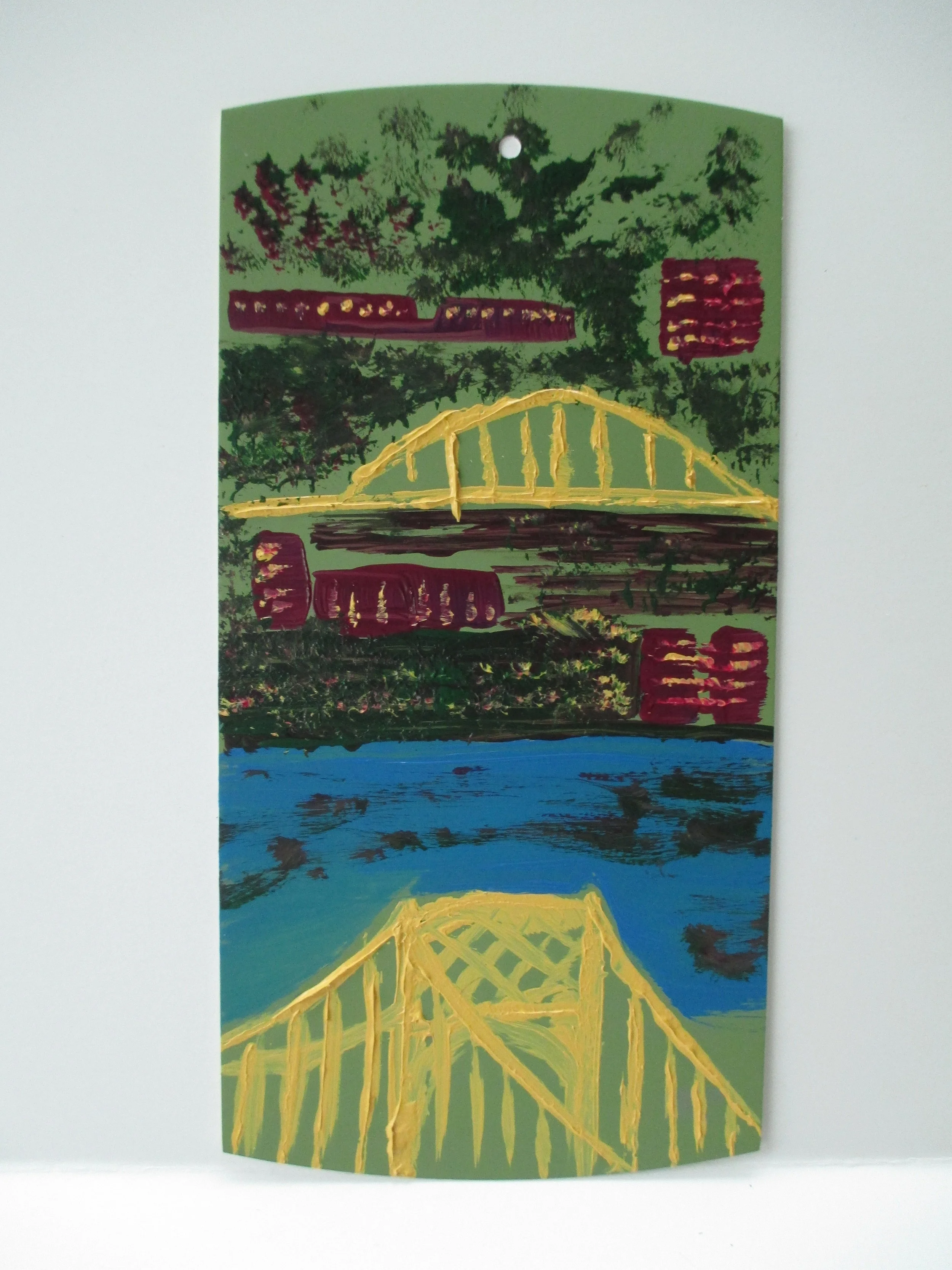 I’d photograph something on the walk and then paint it later that day. In displaying for the show this year, I opted for abstract collages on wood panels. To see the original paintings and the inspiration, check out my video slideshow on Instagram.