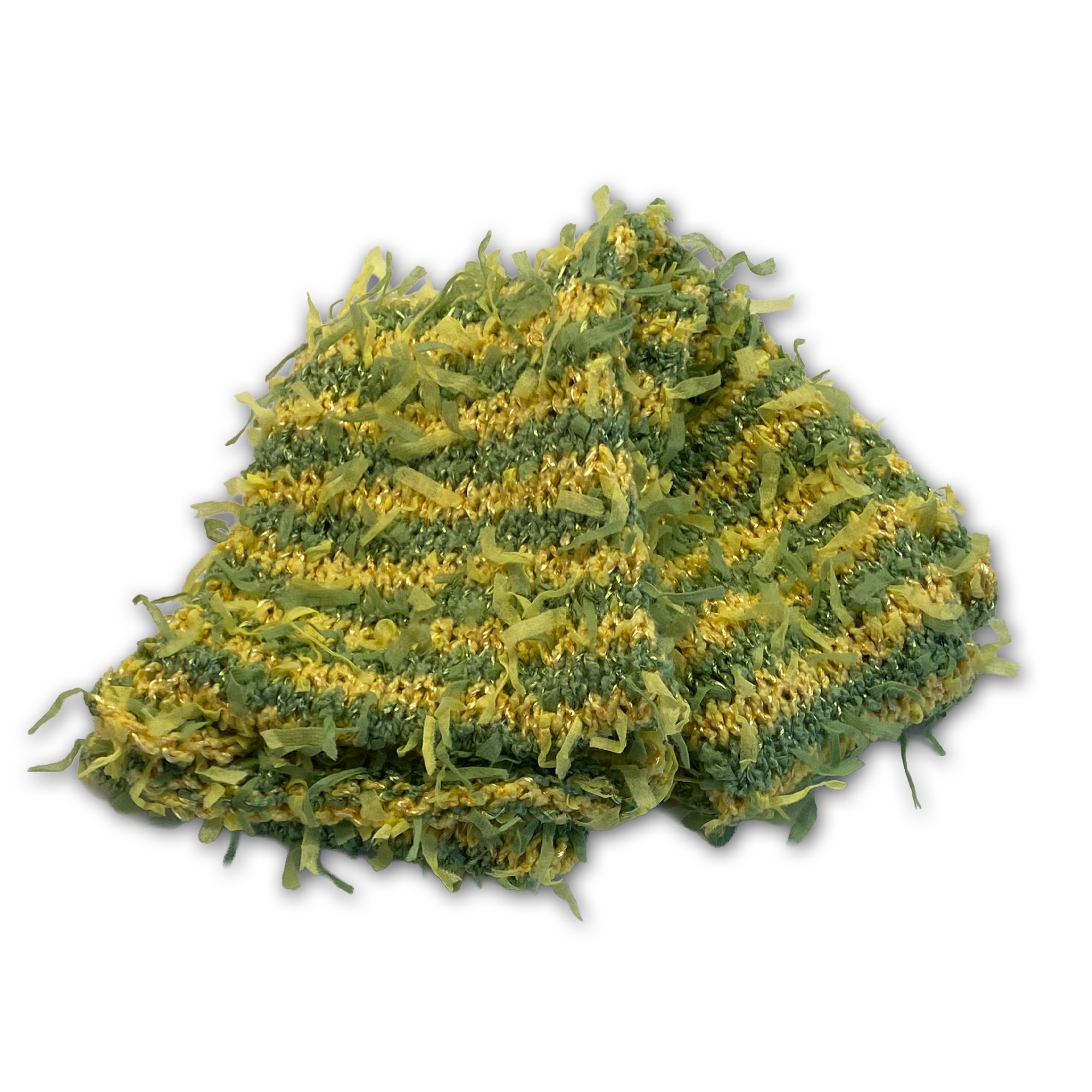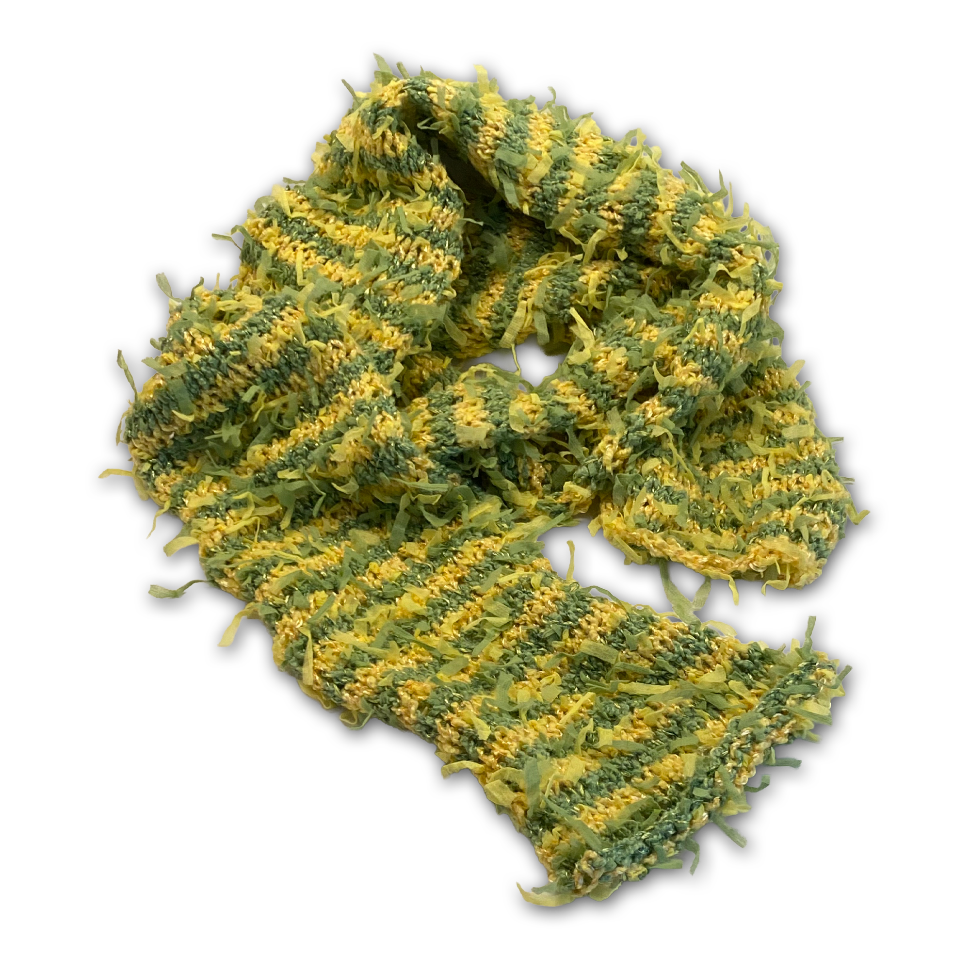 This sampler scarf showcases an array of distinctive stitch patterns, evolving with the introduction of each new yarn. This approach not only highlights the textures and colors of diverse fibers but also creates a tactile and visual exploration within a single piece. Through this evolving interplay of stitches and yarns, the scarf becomes a narrative artifact - each section representing a fragment of a broader creative endeavor happening beyond the scarf itself.
