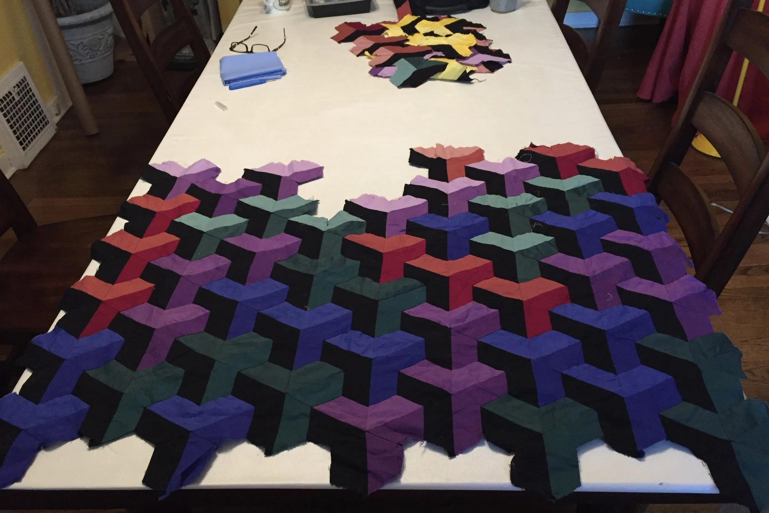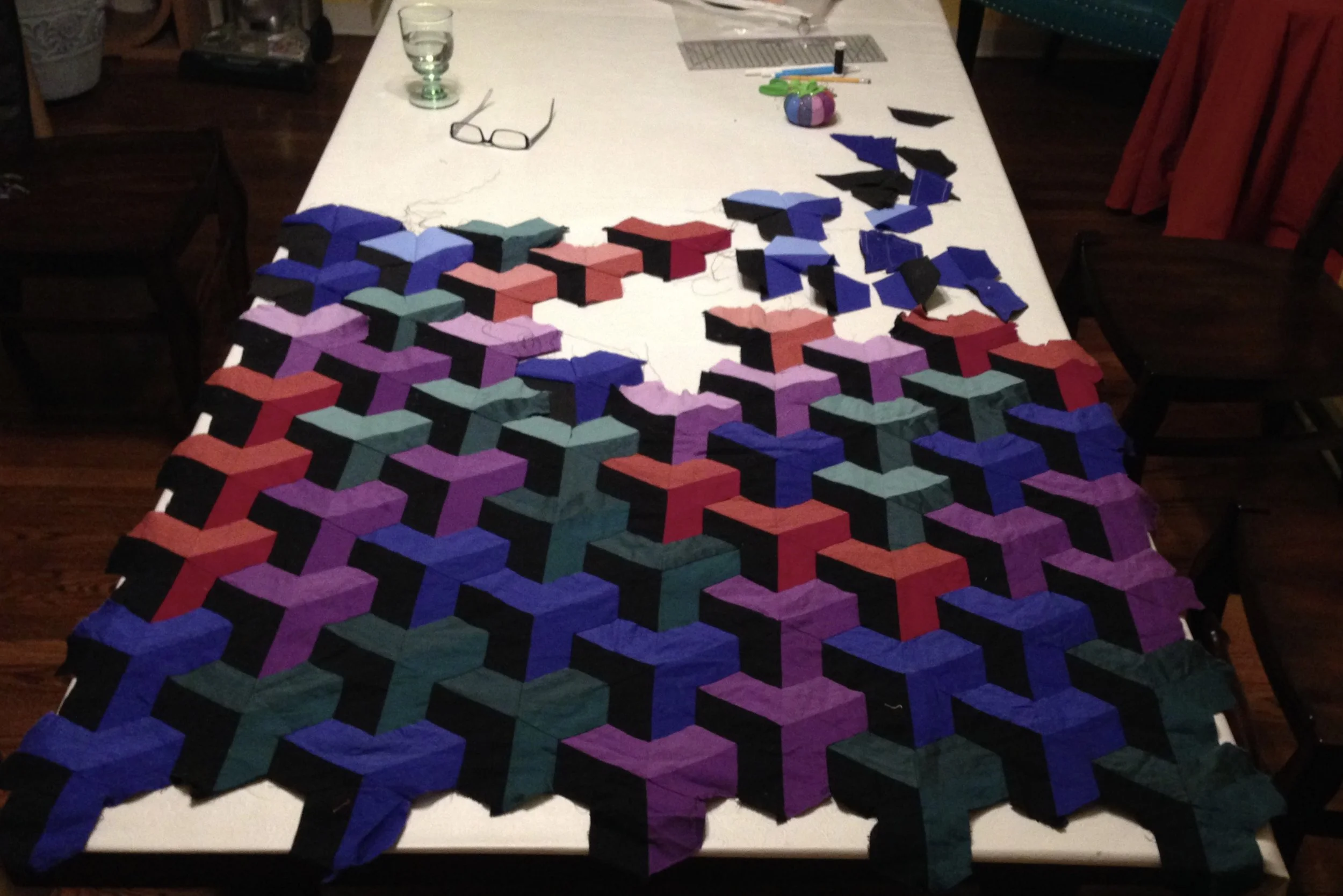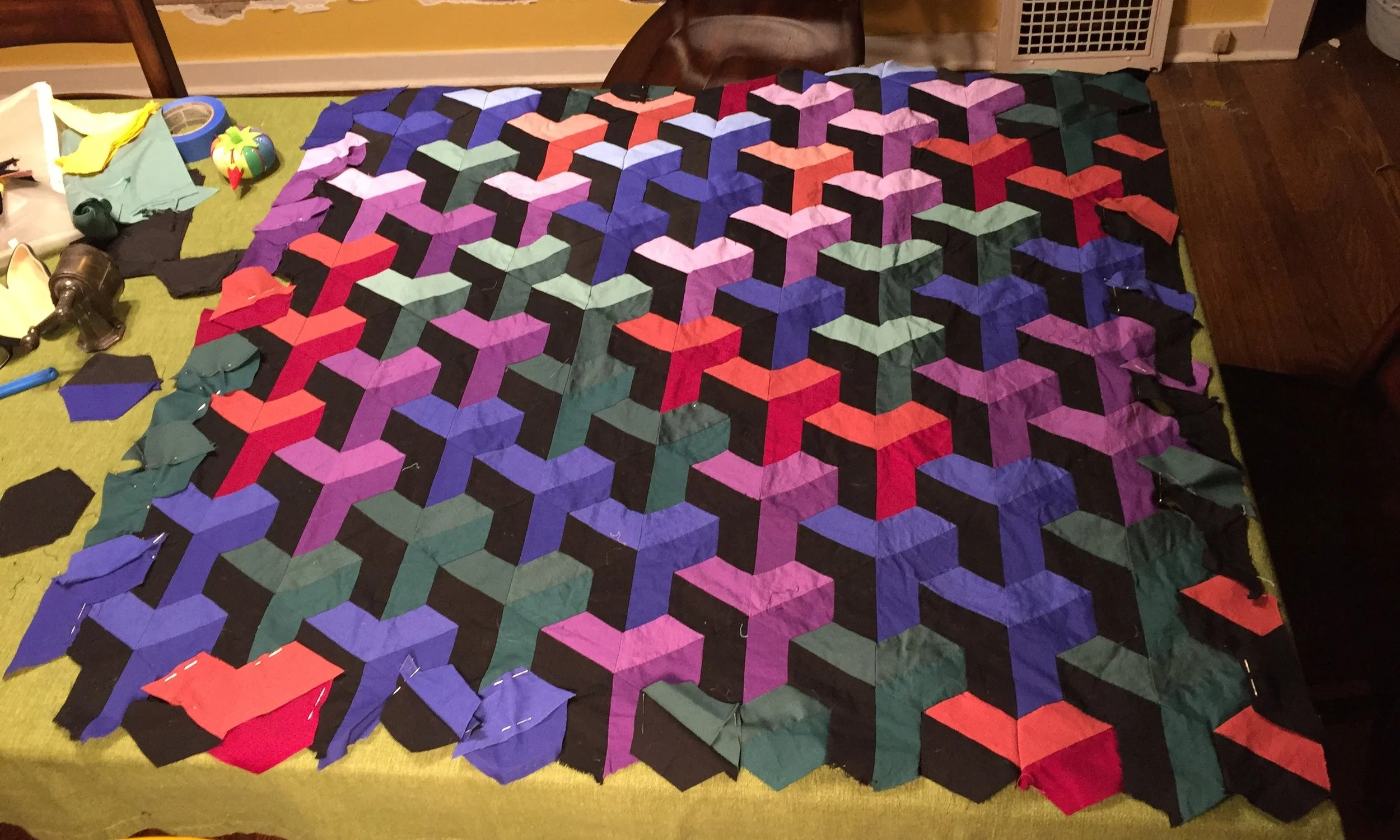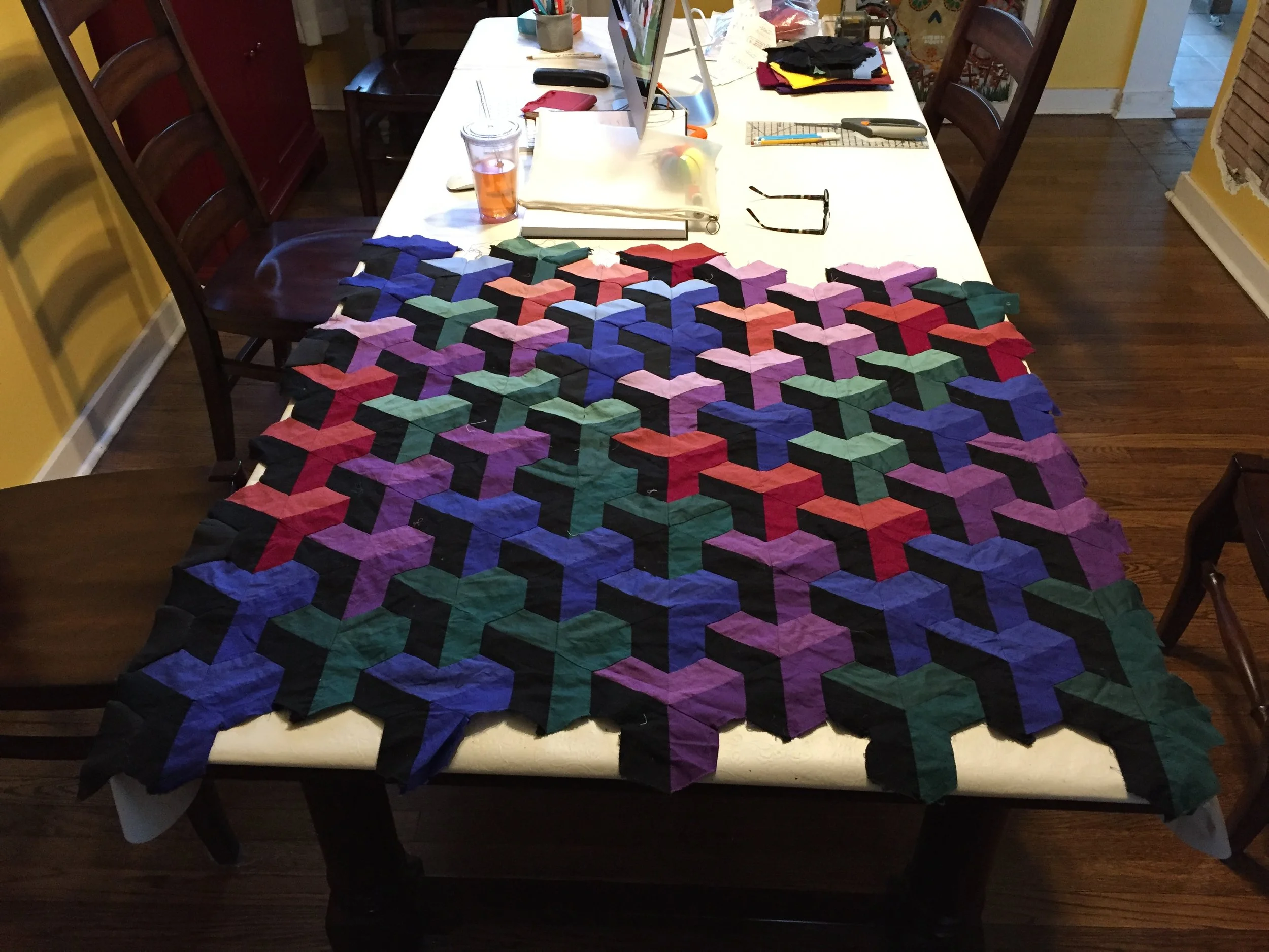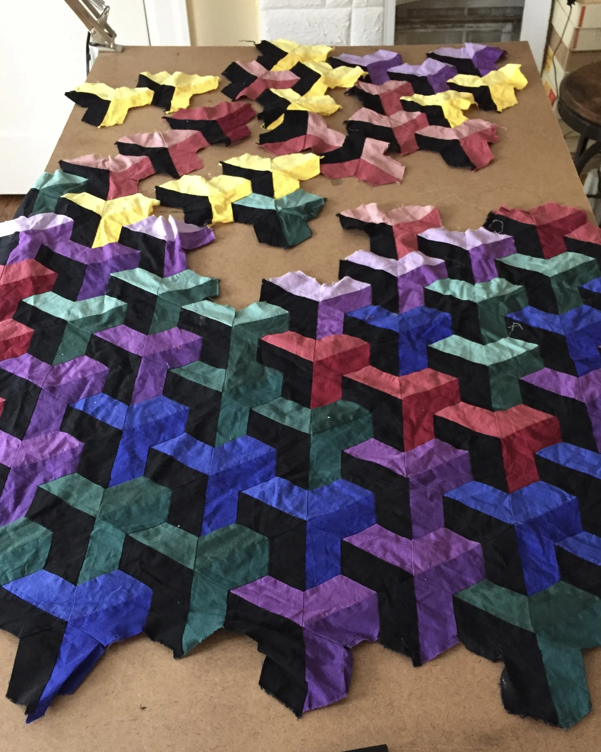 Creating new blocks is taking quite a bit of time to cut and sew together. A tedious process when sewn by hand. I am reminded that 23 years ago my endurance for such things was greater, and my eyesight much better!